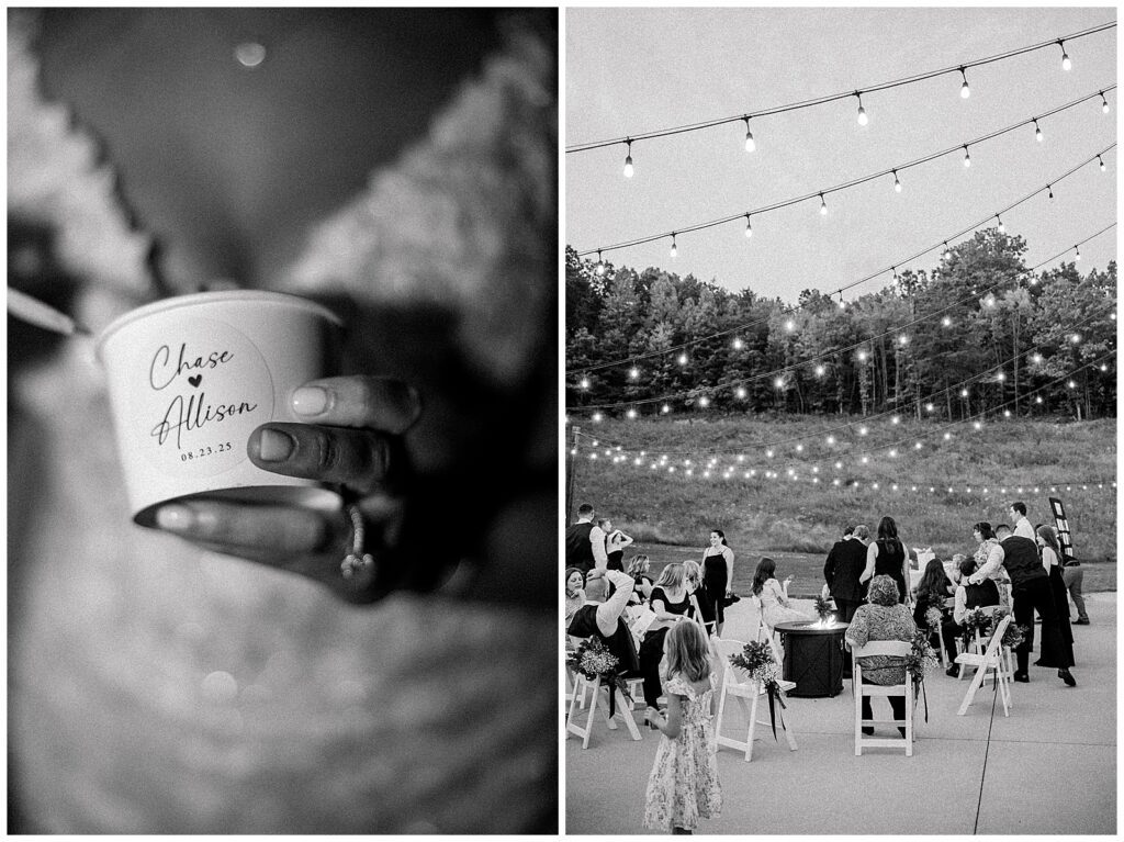 The whole evening felt like the best kind of summer get-together—friends and family laughing, playing cornhole, eating ice cream, and eventually gathering around the fire. It wasn’t just a wedding celebration; it was a reflection of who Allison and Chase are—kind, intentional, and so loved by their people.