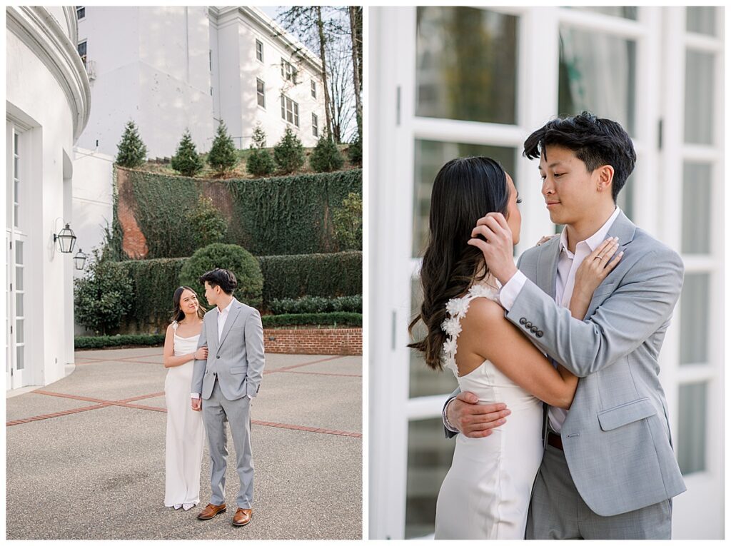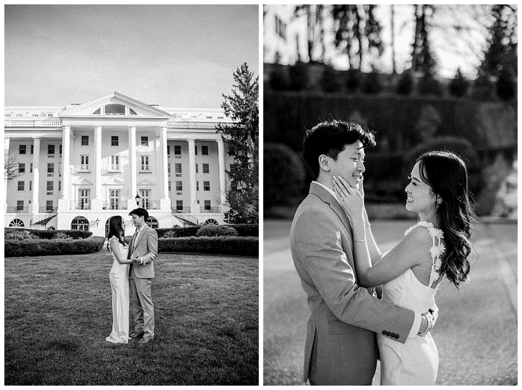 Annie and Minh-Tri drove over five hours one way for their engagement session at The Greenbrier, which is already so kind and intentional… but then they showed up with flowers for us and a whole bag of Trader Joe’s snacks and I knew it was going to be the best evening!! They are also just the sweetest, most beautiful people!